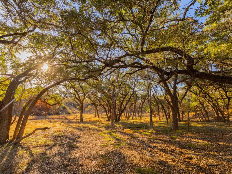At the heart of Boerne Elm Ranch lies a breathtaking dual elm-lined valley, widely considered one of the most scenic features of its kind in the Hill Country. Towering elm trees, supported by a diverse mix of mature hardwoods, blanket the wide valley floor, creating a shaded, park-like environment rarely found at this scale. Seasonal draws weave through the valley, enhancing both beauty and functionality.