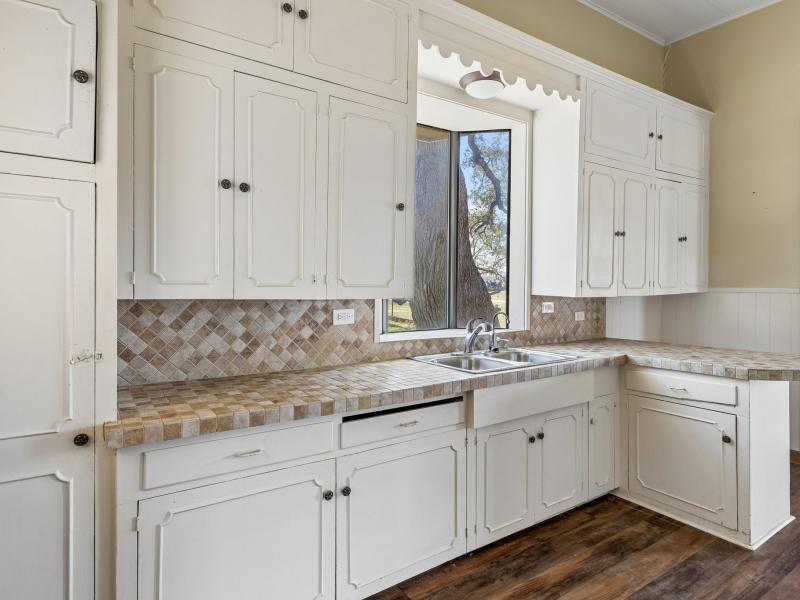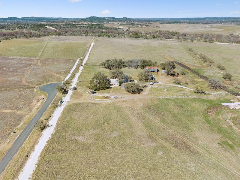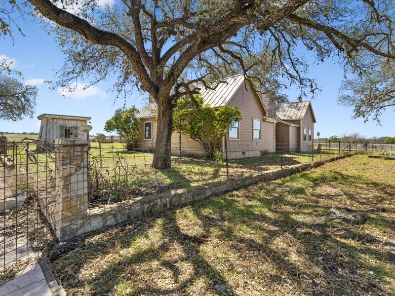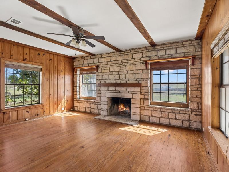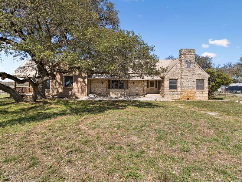 The property is anchored by a charming 1,800 ± square foot Hill Country home built in the 1950s using classic Sisterdale stone. The residence features three bedrooms and two bathrooms, original wood flooring, a pier-and-beam foundation, and two fireplaces—including one in the primary bedroom.