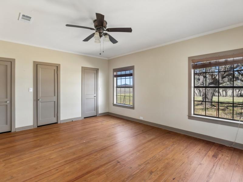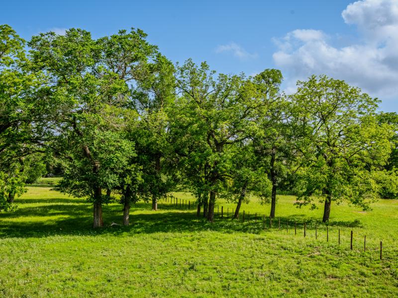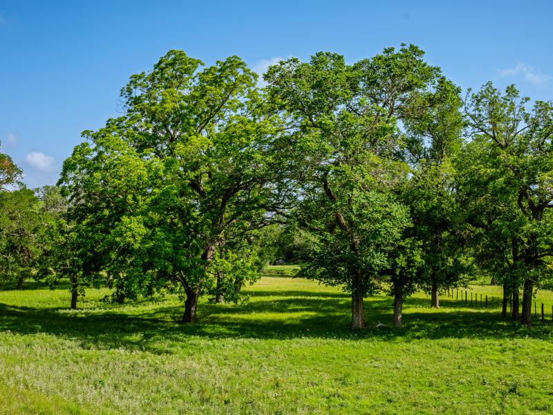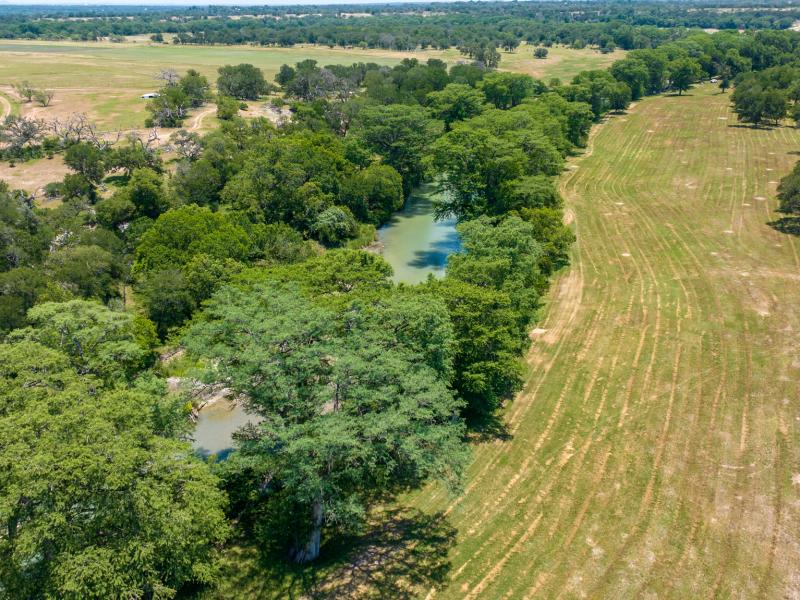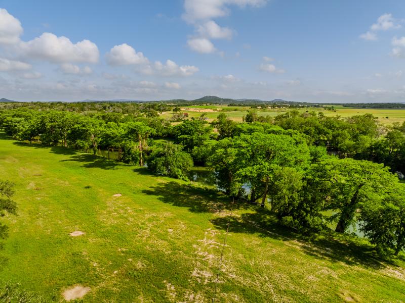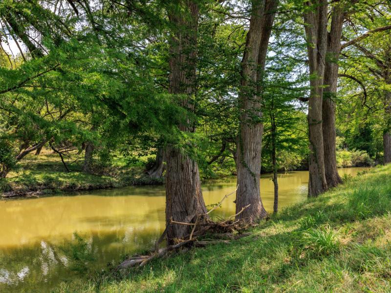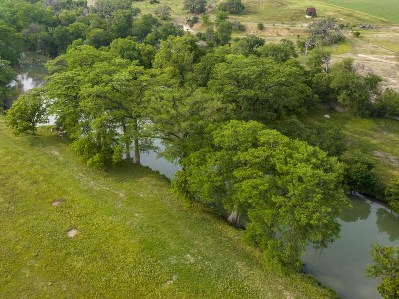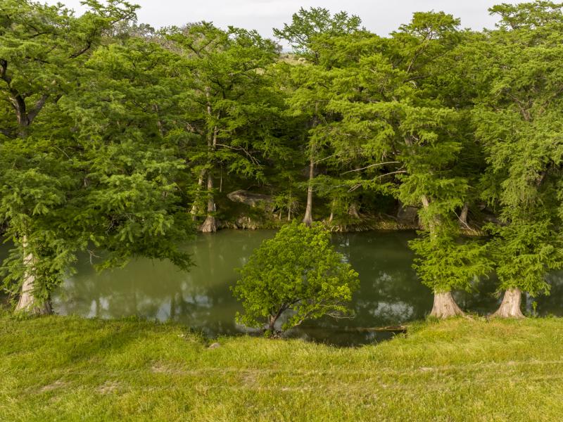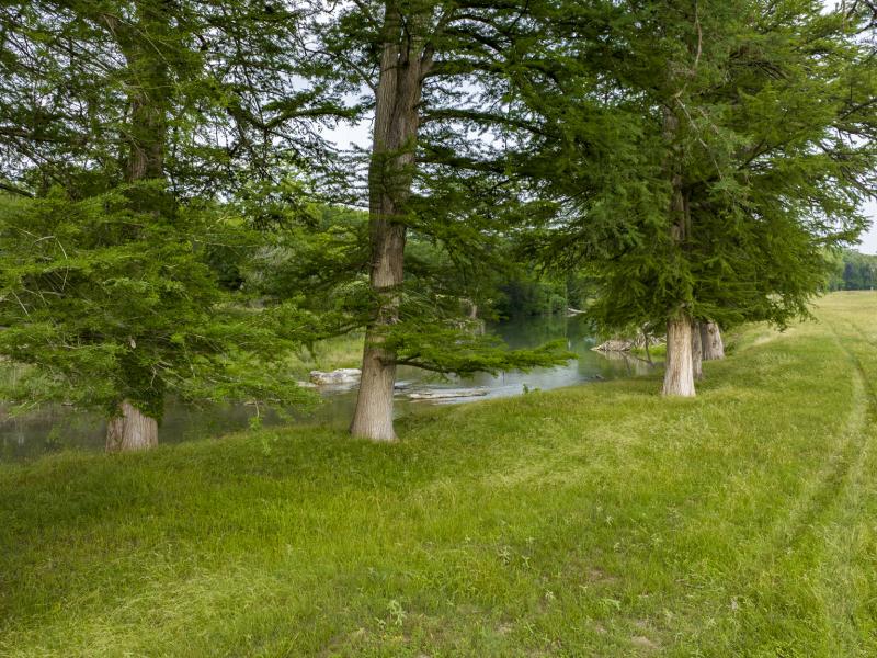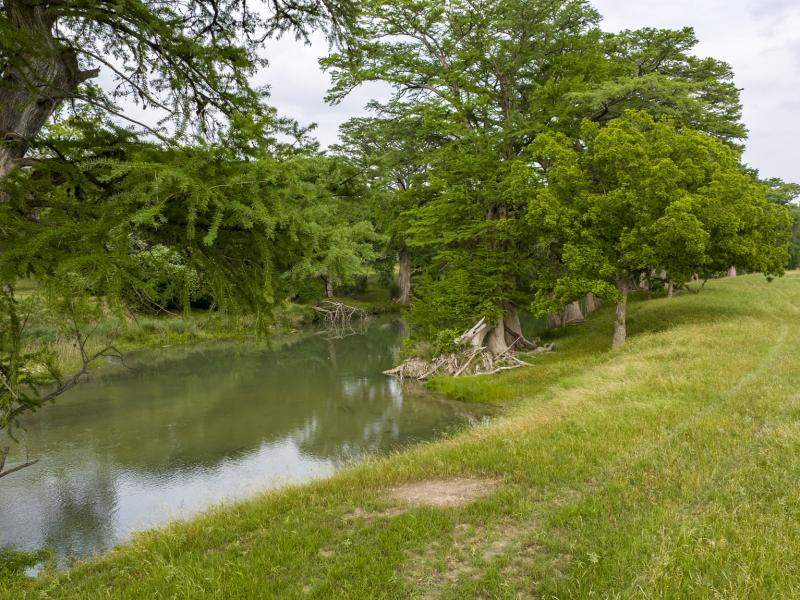 The ranch features a beautiful blend of gently rolling terrain, improved grasses, and mature hardwoods. Heritage oaks surround the homestead, while the river corridor is lined with massive cypress and pecan trees that create shade, privacy, and a striking visual presence.