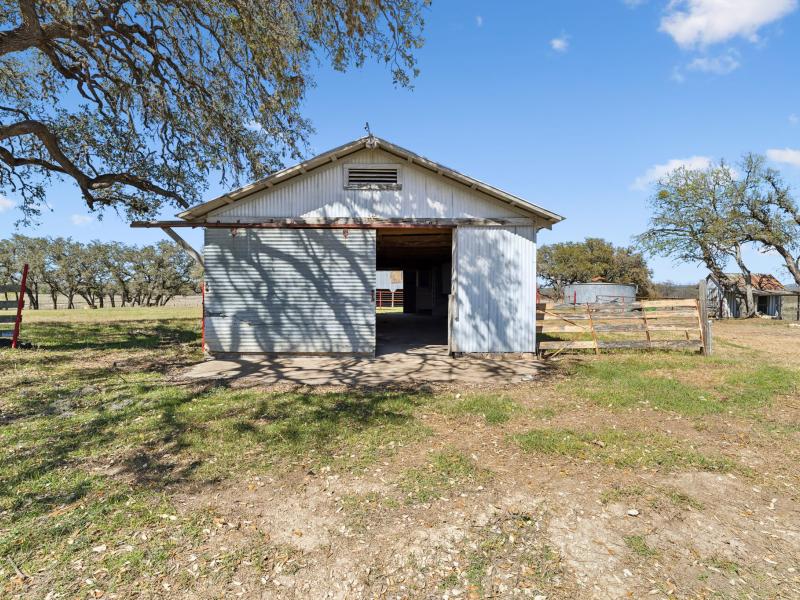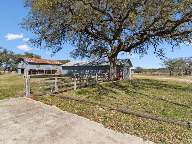 Surrounded by large oak trees, the home offers a peaceful and shaded setting, ideal for gatherings or quiet evenings overlooking the land. Several original barns remain in good condition, adding both utility and a sense of history to the ranch.