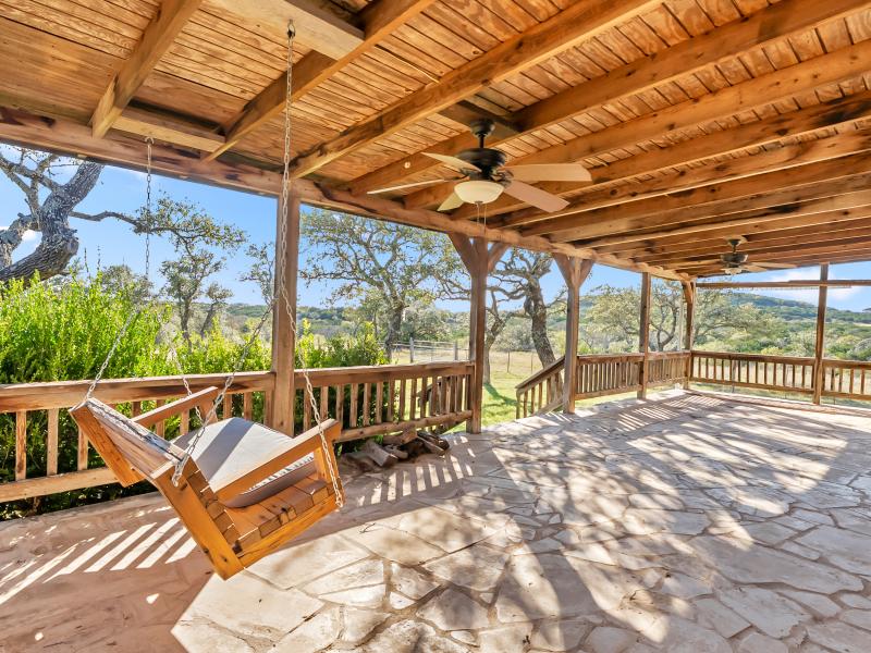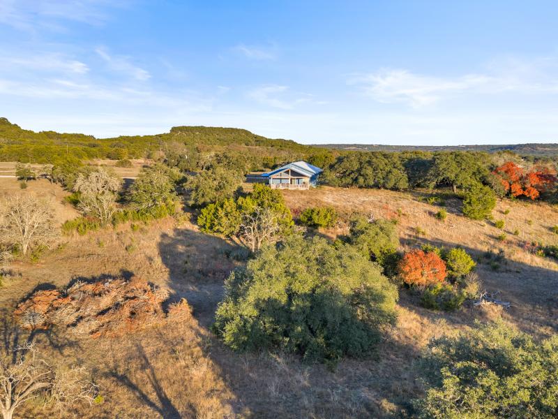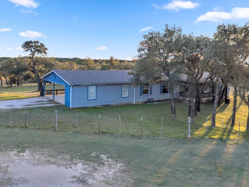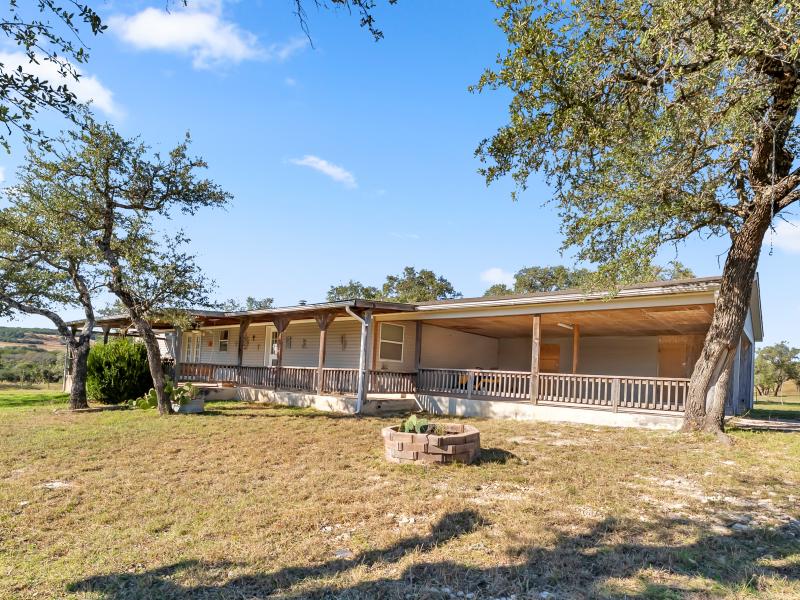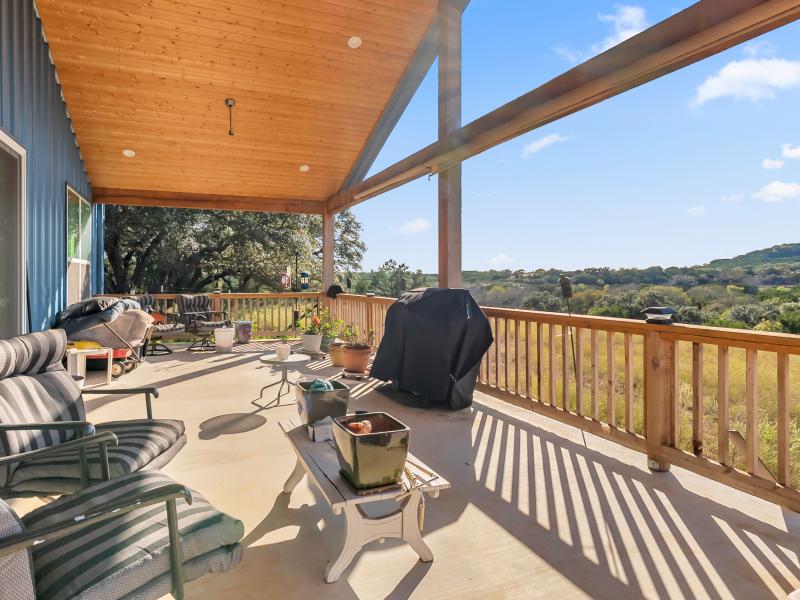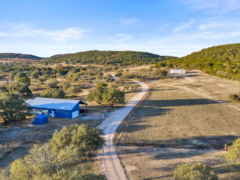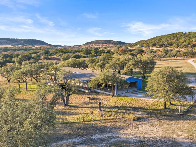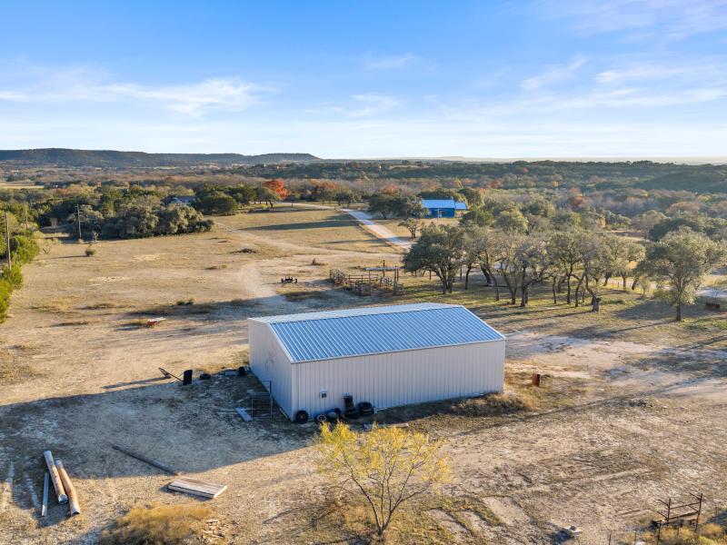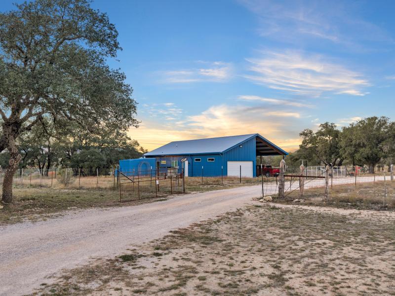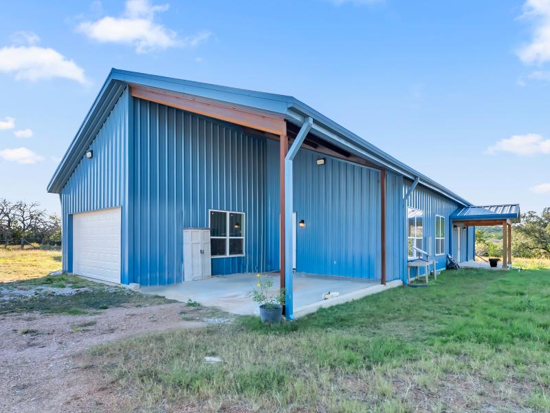 The second home is a newly constructed ~1,587 sq. ft. Barndominium with 3 bedrooms, 2 baths, open concept living and a back porch with phenomenal Hill Country views.