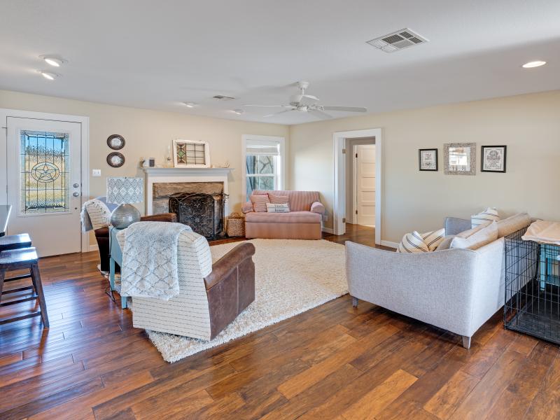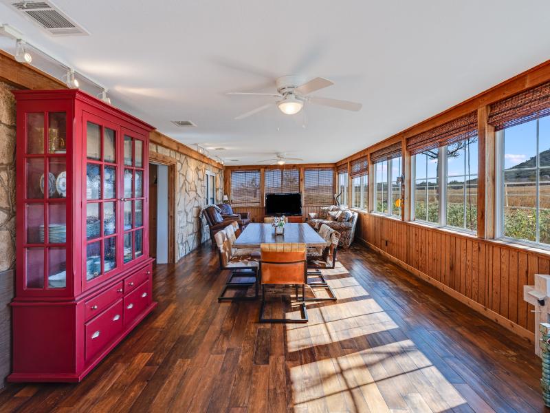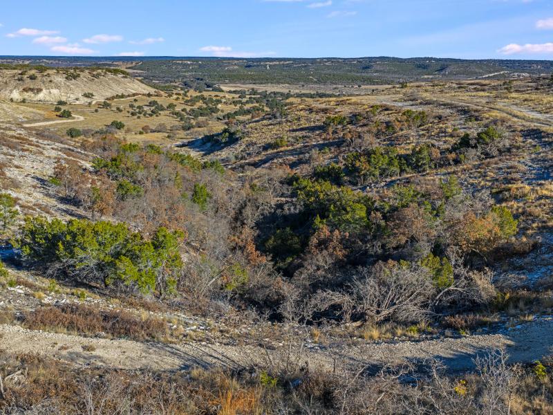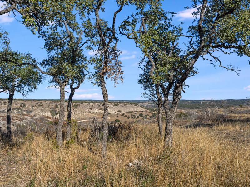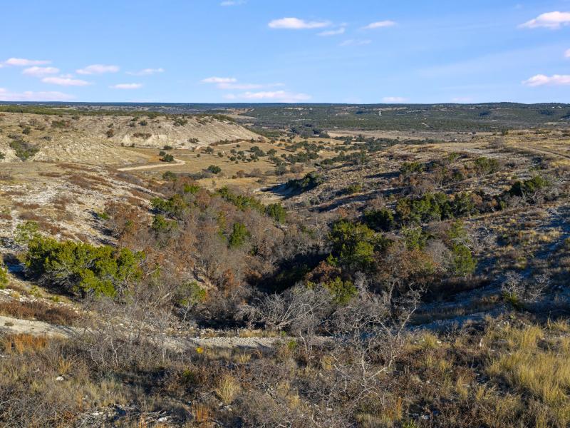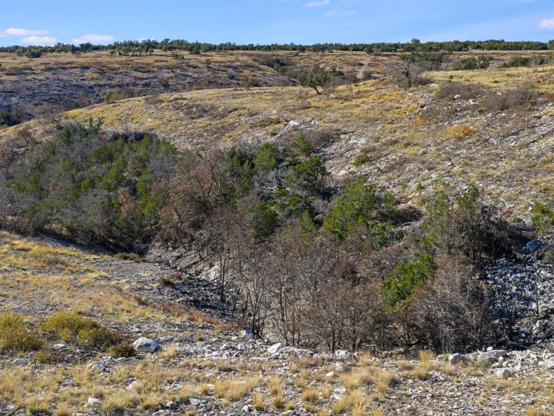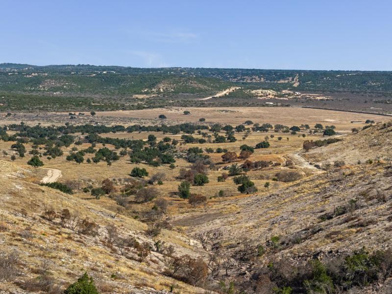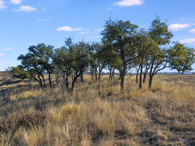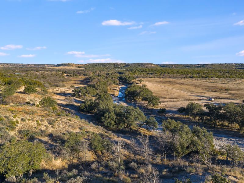 The ranch features approximately 280 feet of elevation change, ranging from 1,700’ to 1,980’, creating expansive views across the Gentry Creek Valley and eastward toward the Llano River Valley. Gently cleared valleys transition into rim rock lines and tabletop mesas, while hardwood-covered ridges offer some of the most scenic overlooks in the region. Improved rangeland planted in Klein, Wilman Lovegrass, and native grasses enhances both grazing capacity and wildlife habitat, making the land as productive as it is visually striking.