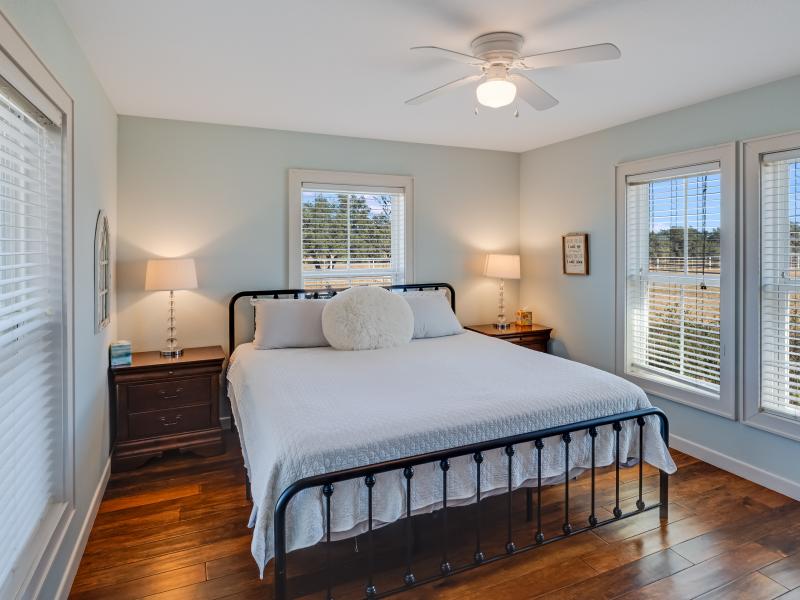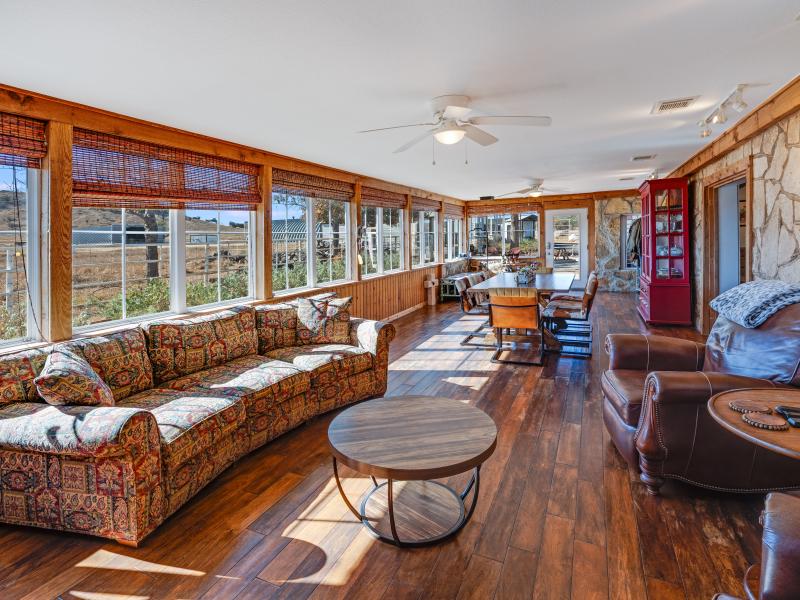 Improvements are well-suited for both ranch operations and comfortable living. The main residence has been tastefully remodeled and includes three bedrooms, two bathrooms, a living room with fireplace, and a kitchen with additional living and dining space. Two guest homes, each approximately 400 square feet with one bedroom and one bathroom, provide additional accommodations. Ranch infrastructure includes two Quonset barns of approximately 3,500 square feet each with concrete slabs and large sliding doors, a large steel vehicle shed enclosed on three sides, and nearly one mile of 8’ cedar stave privacy fencing along the eastern boundary.
