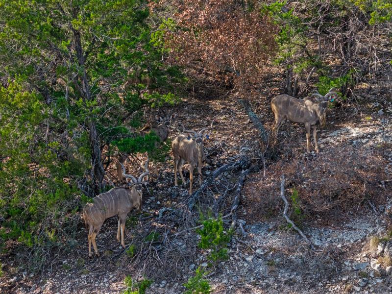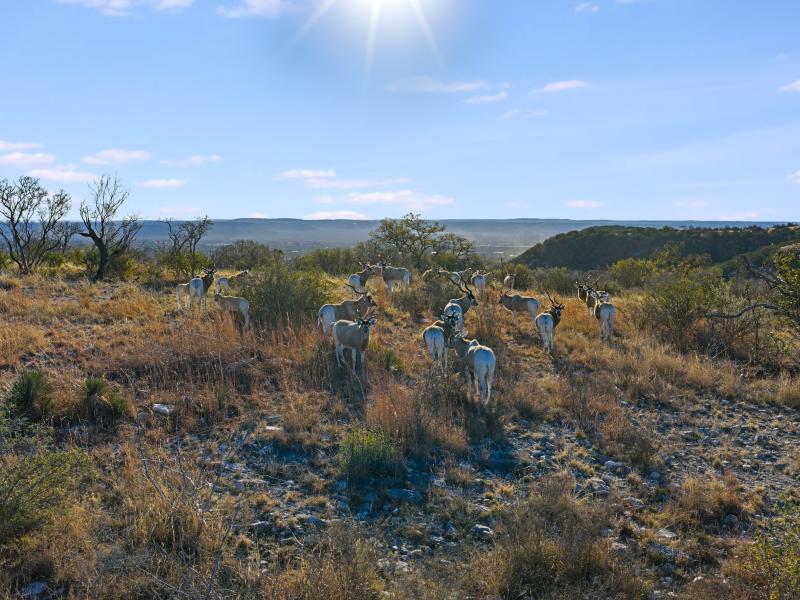 The ranch supports a strong population of exotic wildlife, including Axis deer, Red deer, Blackbuck antelope, and Addax antelope. Combined with live water, improved grasses, and diverse terrain, the habitat supports excellent wildlife distribution and year-round recreational enjoyment.