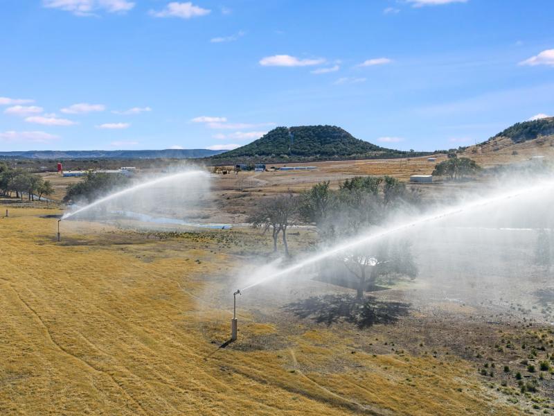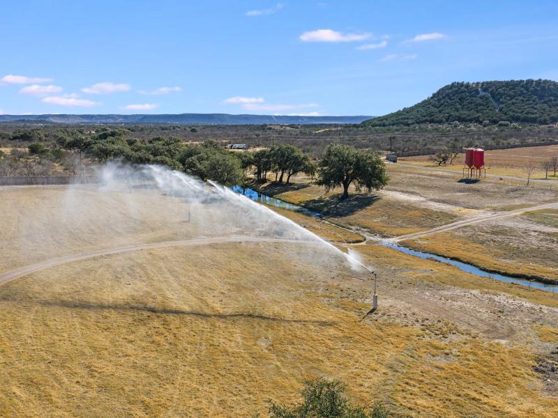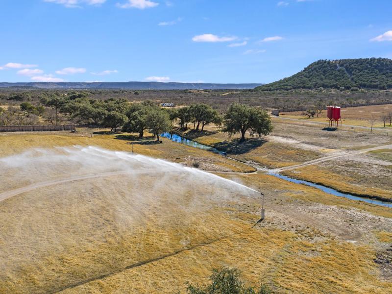 The ranch is further enhanced by approximately 35 acres of state-of-the-art irrigation supported by three 65,000-gallon holding tanks and three water wells—two producing approximately 100 GPM. A 100 GPM well with a 6” casing and 10 HP pump supplies a water-cannon style irrigation system designed and installed by Jeff Johnson, delivering approximately 500 GPM to 32 water cannons. Irrigated fields are planted in improved Coastal Bermuda grass, providing exceptional forage and long-term productivity.