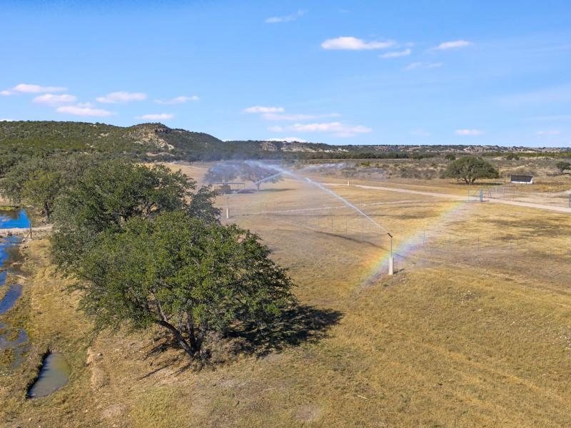 4 Christ Ranch is a standout Hill Country property spanning ±818.71 acres in highly desirable Kimble County, offering a rare combination of live water, large-scale irrigation, improved grasses, dramatic elevation change, and quality improvements. The ranch fronts both County Road 311 and Big Draw Ranch Road, providing excellent access while maintaining privacy and seclusion. With more than one mile of frontage on both sides of Gentry Creek, mature oak-lined bottoms, and sweeping Hill Country views, 4 Christ Ranch delivers exceptional scenic beauty, productivity, and recreational appeal just outside Junction, Texas.