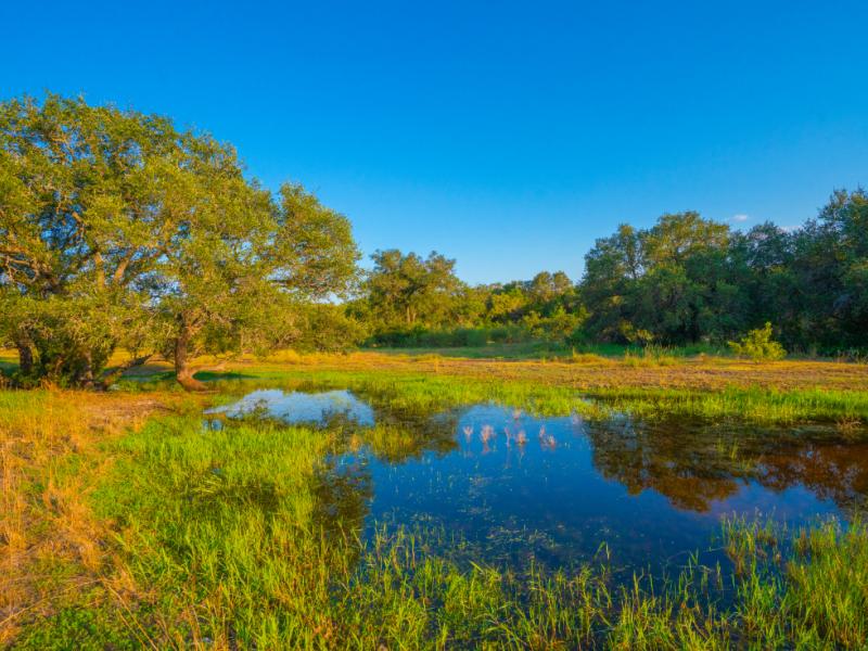 The property is exceptionally well-watered with multiple surface tanks and several dependable water wells supplying troughs, ponds, and wildlife stations throughout. Select ponds are supplemented with well water to maintain levels, help run a prominent operation while also offering high end dove hunts. Seasonal Dry Simpson Creek and its tributaries cross the ranch, featuring rock-bottom stretches and natural game corridors that could be enhanced into permanent water features. The ranch is partially high-fenced, with two full sides already complete, providing a strong base for continued game management if desired. Electricity is available across the property, supporting future improvements such as a lodge, guest cabins, barns, or other infrastructure.