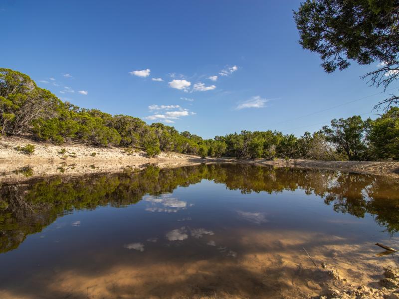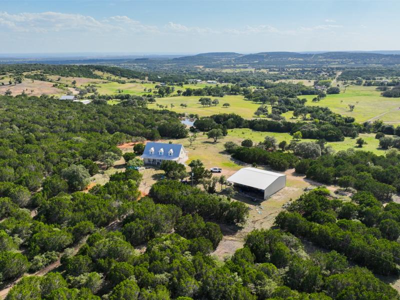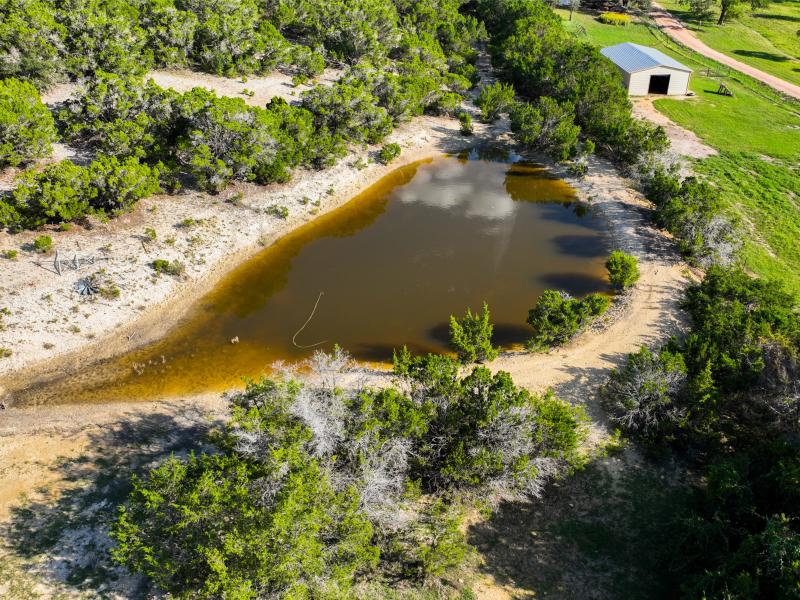 This estate showcases classic Hill Country scenery, featuring gently rolling terrain, mature hardwoods, native grasses, and a scenic pond that attracts wildlife throughout the year. The varied topography allows for stunning long-range views, ideal for sunsets and wildlife observation. A 40' x 60' metal barn with 14' eaves provides ample space for equipment, storage, or agricultural use.