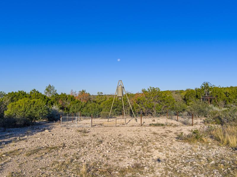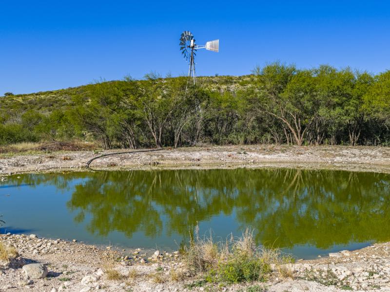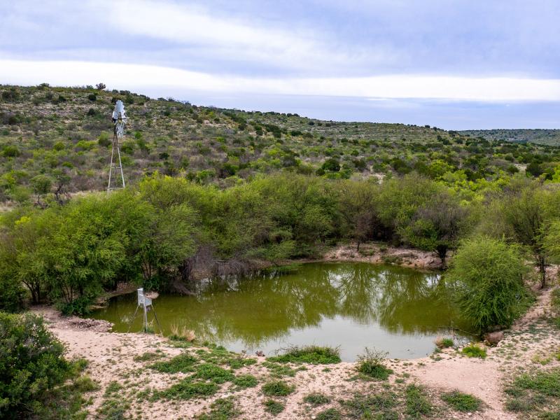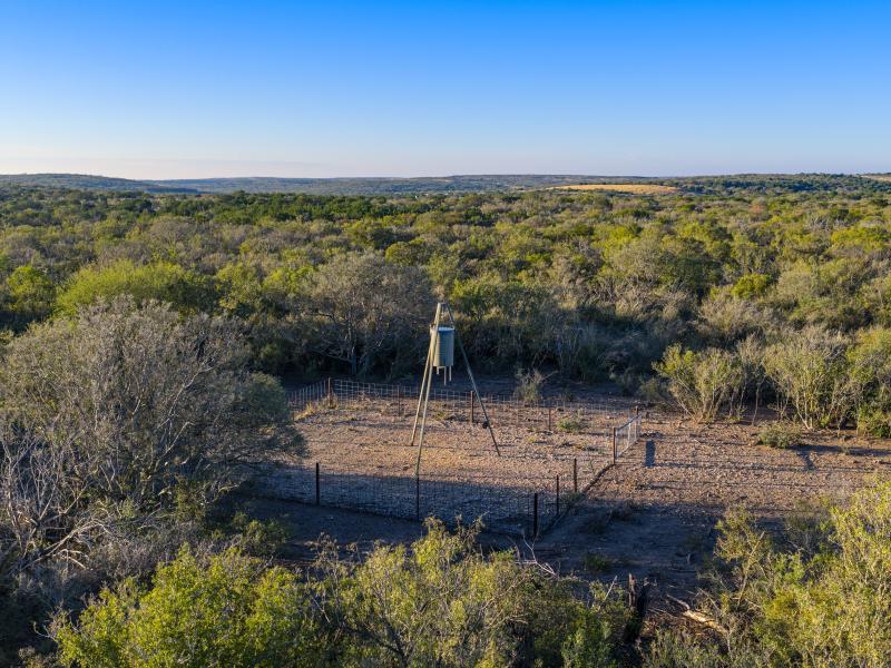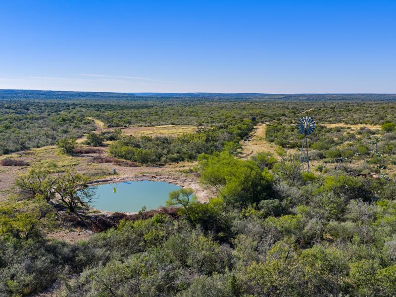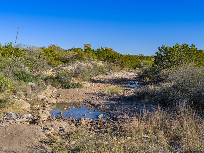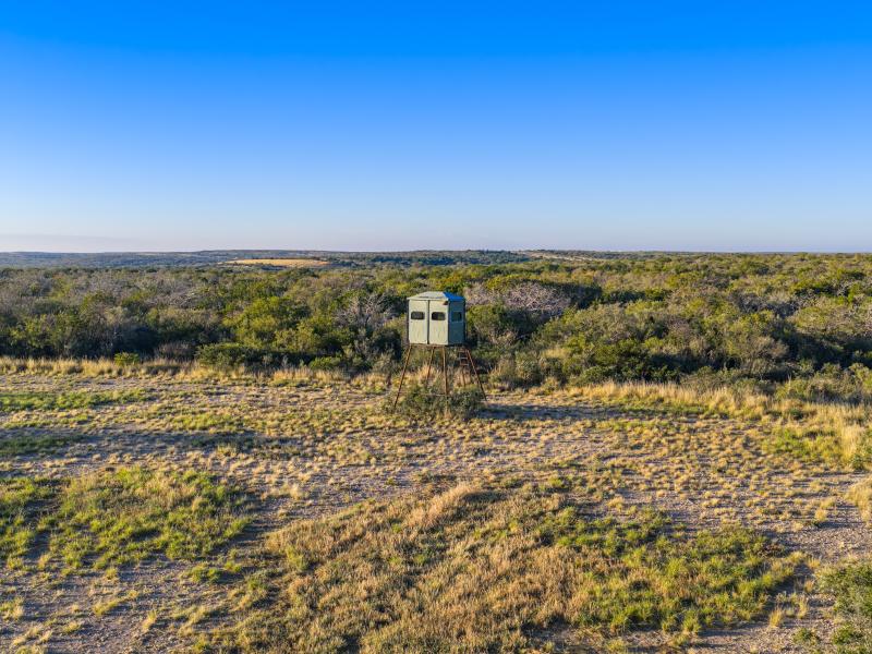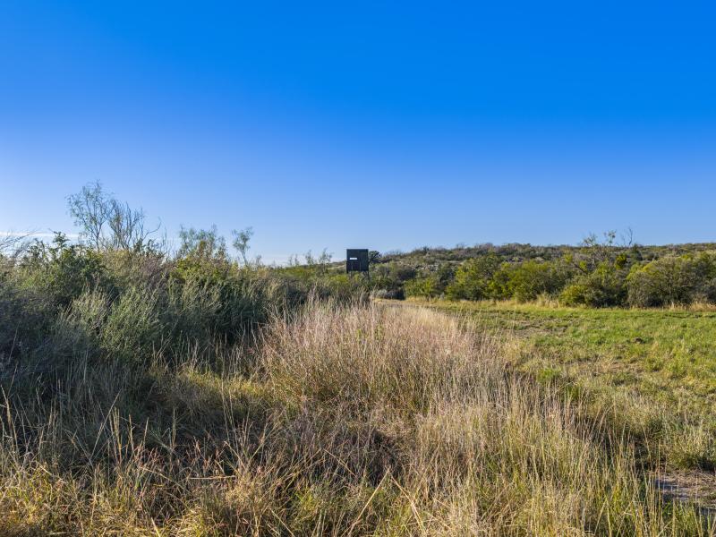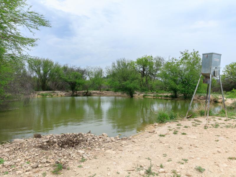 A reliable water well at the headquarters feeds an extensive distribution system that supplies six strategically placed water stations and ten additional troughs, providing dependable hydration for wildlife and livestock across every pasture. Beyond the well system, the ranch offers impressive natural surface-water features. Cow Creek meanders through the property for over 1.25 miles, supported by multiple draws and tributaries that feed into it—creating shaded pockets, bedding areas, and natural travel corridors that game consistently utilize. These wet-weather arteries not only enhance habitat diversity but also offer outstanding opportunities for future water impoundments, allowing a new owner to create ponds or small lakes in ideal collection points. On the northeast corner, a scenic pond serves as an additional water source and a natural attraction for wildlife, especially during seasonal rains. Together, the well infrastructure, creek system, and topography combine to create a ranch with exceptional water today—and even greater potential for tomorrow.