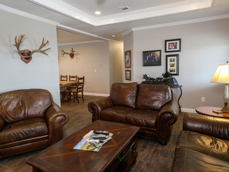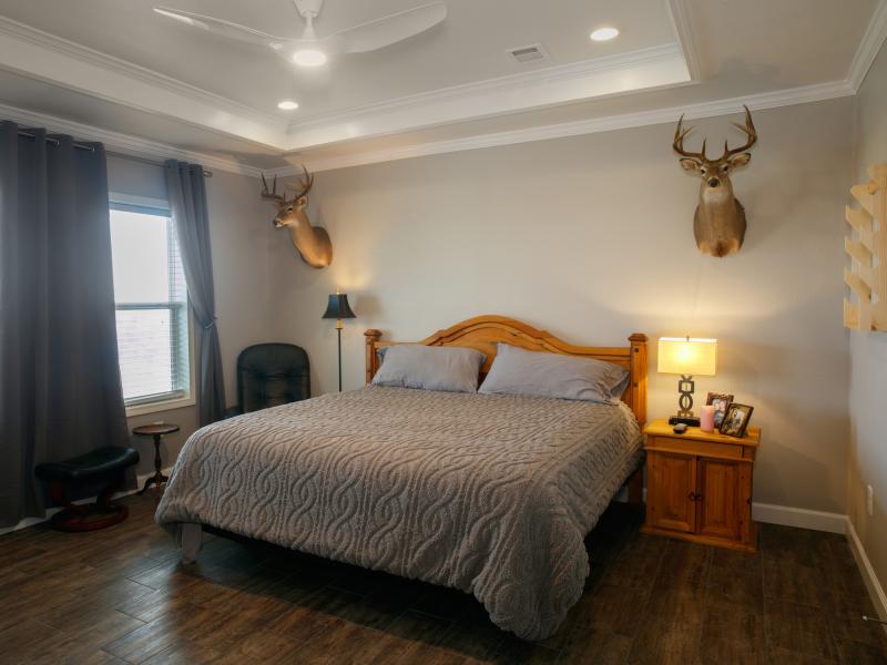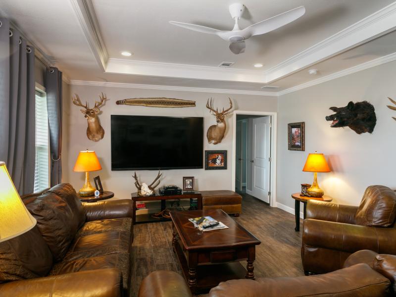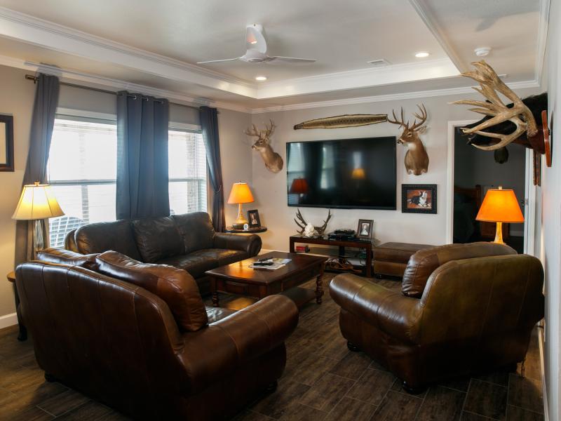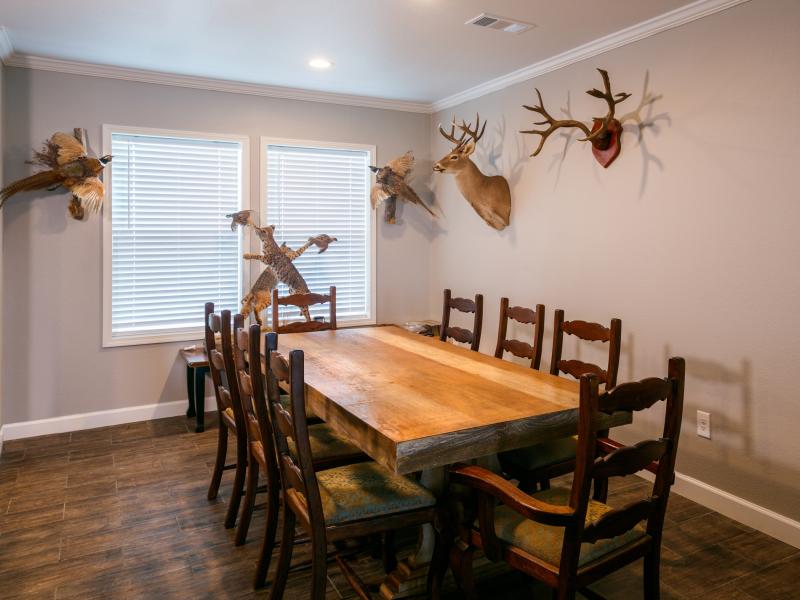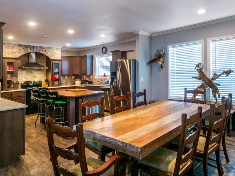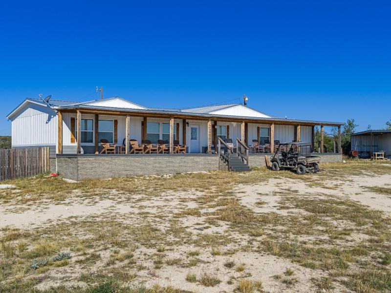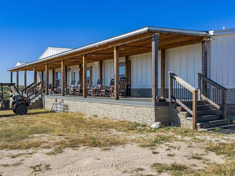 The headquarters of Guajillo Rack Ranch is exceptionally well-appointed, offering a turnkey setup designed for comfort, convenience, and long-term enjoyment. At its heart is a spacious, well-maintained 5-bedroom, 4-bath modular home—large enough to host family, friends, or an entire hunting party with ease. A wide covered porch stretches across the front, perfectly positioned to capture the sweeping South Texas hilltop views and providing the ideal setting for morning coffee, evening cocktails, and gathering after a day in the field.