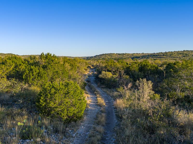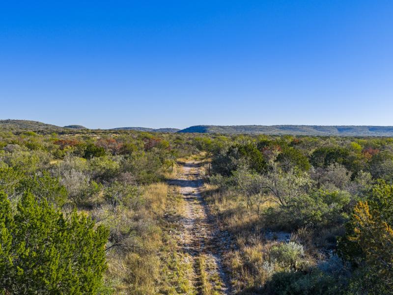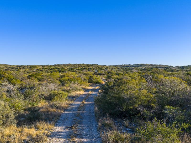 Guajillo Rack Ranch embodies the best of the Brackettville area—rolling and rugged terrain with the kind of classic South Texas brush that consistently holds free-ranging wildlife. Strong stands of guajillo, bull mesquite, blackbrush, whitebrush, and other native species blanket the property, creating exceptional habitat and natural nutrition for deer, turkey, and a wide array of game. Cow Creek cuts through the ranch for more than 1.25 miles, flowing as a wet-weather system that pools beautifully during the rainy season and provides vital travel corridors and bedding pockets for wildlife. Both sides of Cow Creek are accessible across the property, and four additional tributaries feed into the creek, carving out charismatic rock faces, shaded draws, and impressive bluffs—features that not only elevate the ranch’s natural character but also lay a strong foundation for future water-impoundment projects. Expansive hilltops on the back side of the ranch deliver commanding views, with sweeping sunrises and sunsets that capture the full scale of the surrounding country. A well-maintained internal road system ties everything together, offering seamless access while showcasing the property’s most scenic and wildlife-rich areas.